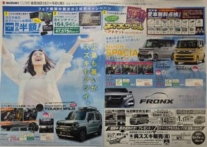 告知が始まった新型スペーシアギアhttps://www.suzuki.co.jp/car/spacia_gear/と新型フロンクスhttps://www.suzuki.co.jp/car/fronx/の早期予約も受け付け中です。