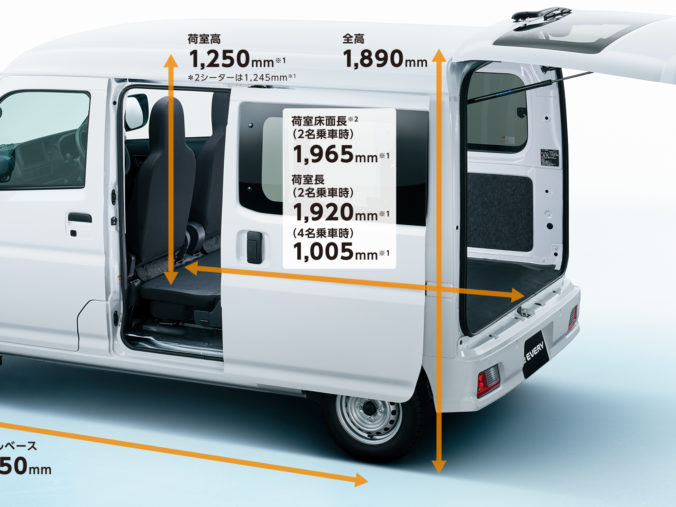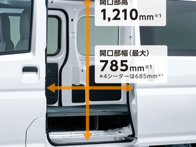 - スライドドア ・ 車中泊 ・ 低燃費 ・ 大積載量